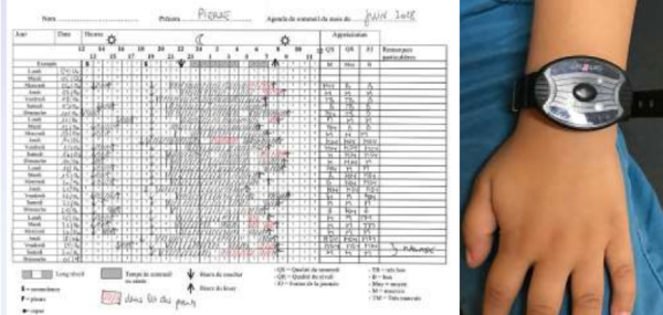 L’actigraphie utilise un dispositif de détection des mouvements de type bracelet, placé au poignet ou à la jambe, et dont les données sont analysées informatiquement. Elle renseigne sur le temps total de sommeil, l’heure de début du sommeil, l’heure du réveil, la fréquence des réveils nocturnes, et l’efficacité du sommeil.(4) La polysomnographie et la vidéosomnographie caractérisent davantage les troubles du sommeil, mais elles sont rarement indiquées en cas d’insomnie simple, et par ailleurs limitées par leur coût, leur disponibilité et leur faisabilité chez les enfants présentant un TSA.(4) En revanche, elles s’avèrent indispensables en cas de suspicion d’un syndrome d’apnées du sommeil, d’un syndrome de mouvement périodique des jambes ou d’une épilepsie nocturne. Toutes ces pathologies peuvent induire une mauvaise qualité de sommeil, des éveils nocturnes, voire un réveil précoce.